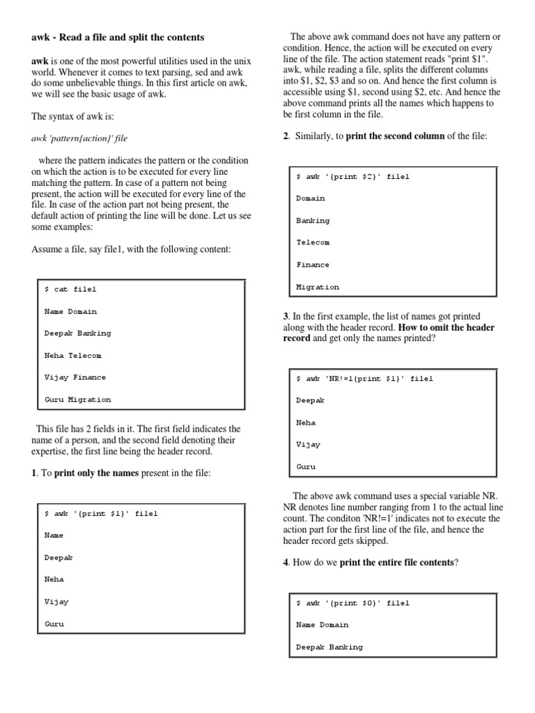 Uncategorized Print Only First Column Awk / Awk 'nr==1 {print $4} nr==2 {print $5}' file. The unix command 'column' seems working for this purpose, but i did not figure it out yet.